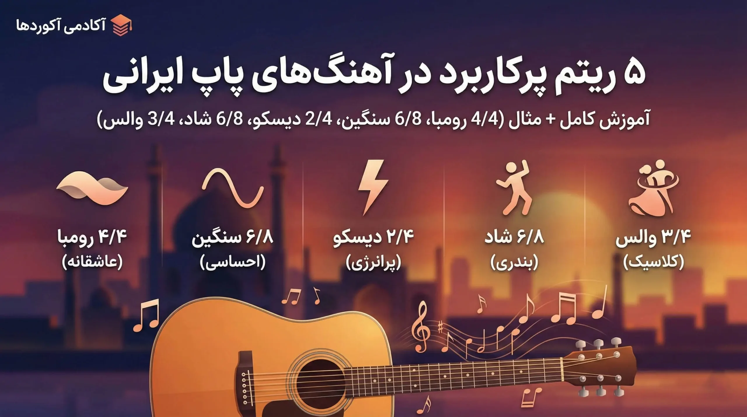 ۵ ریتم پرکاربرد در آهنگهای پاپ ایرانی که هر گیتاریستی باید بداند (آموزش کامل + مثال)